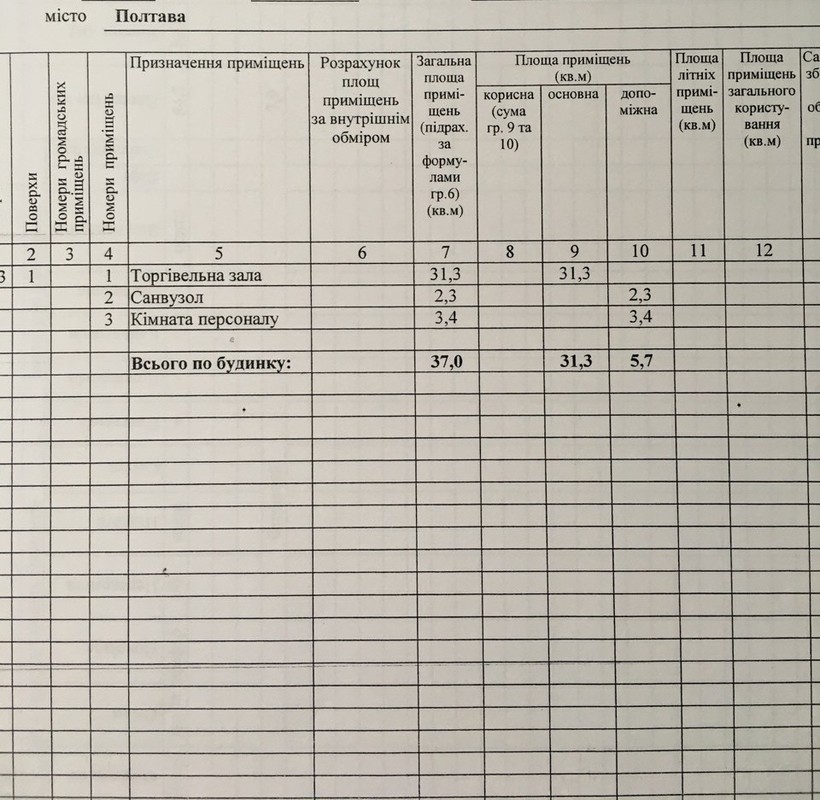 Тип: нежиле приміщення в житловому будинку